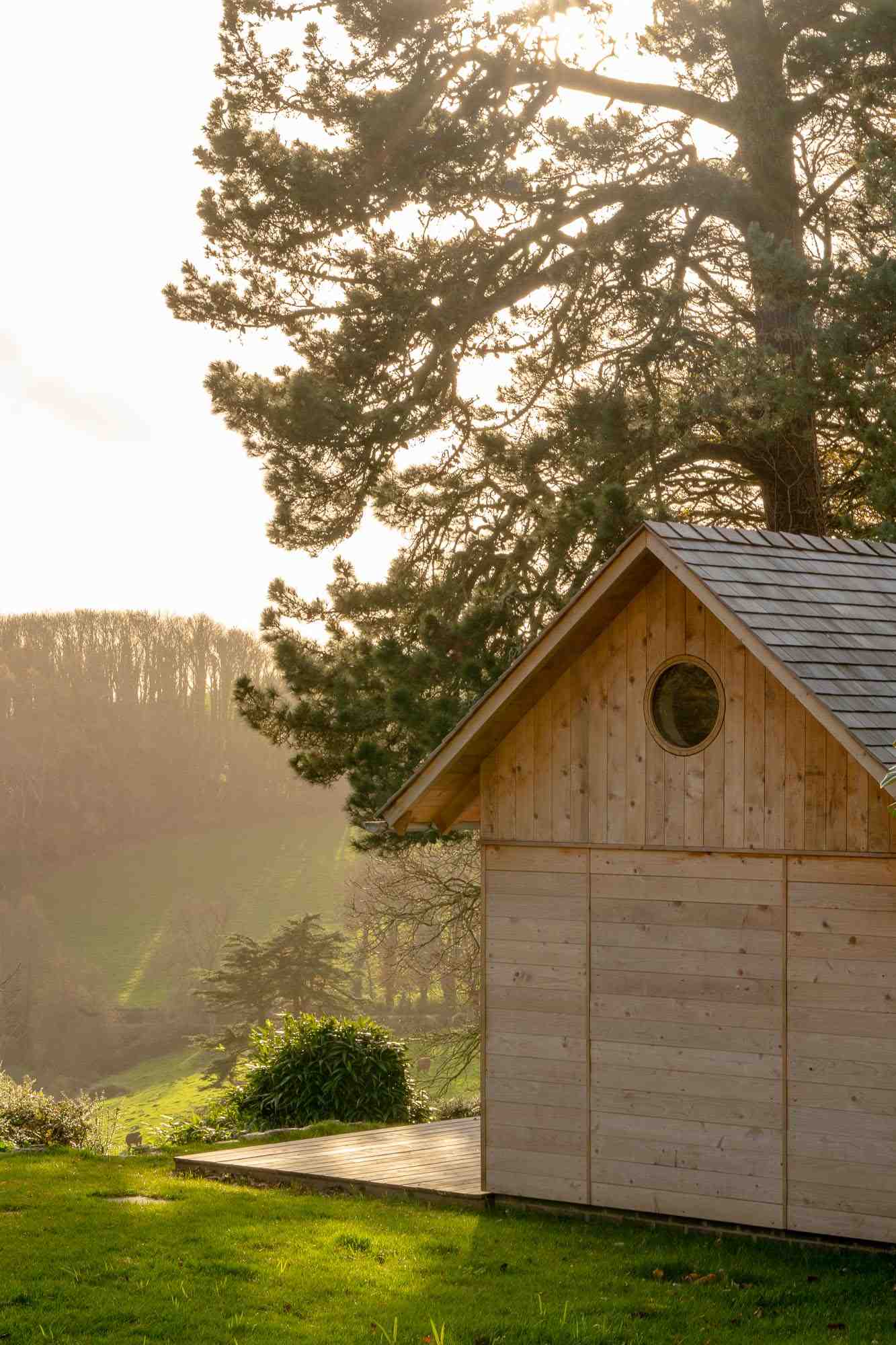 W urokliwym ogrodzie wakacyjnej posiadłości w South Hams w Devon powstał dopracowany, starannie zaprojektowany domek, który doskonale wpisuje się w otoczenie. Jego lokalizacja wśród zieleni nadaje mu kameralny charakter i tworzy idealne tło do odpoczynku z dala od miejskiego zgiełku. Nowa konstrukcja zastąpiła dawny domek Wendy, zachowując pierwotne położenie, lecz nadając przestrzeni zupełnie nową jakość.